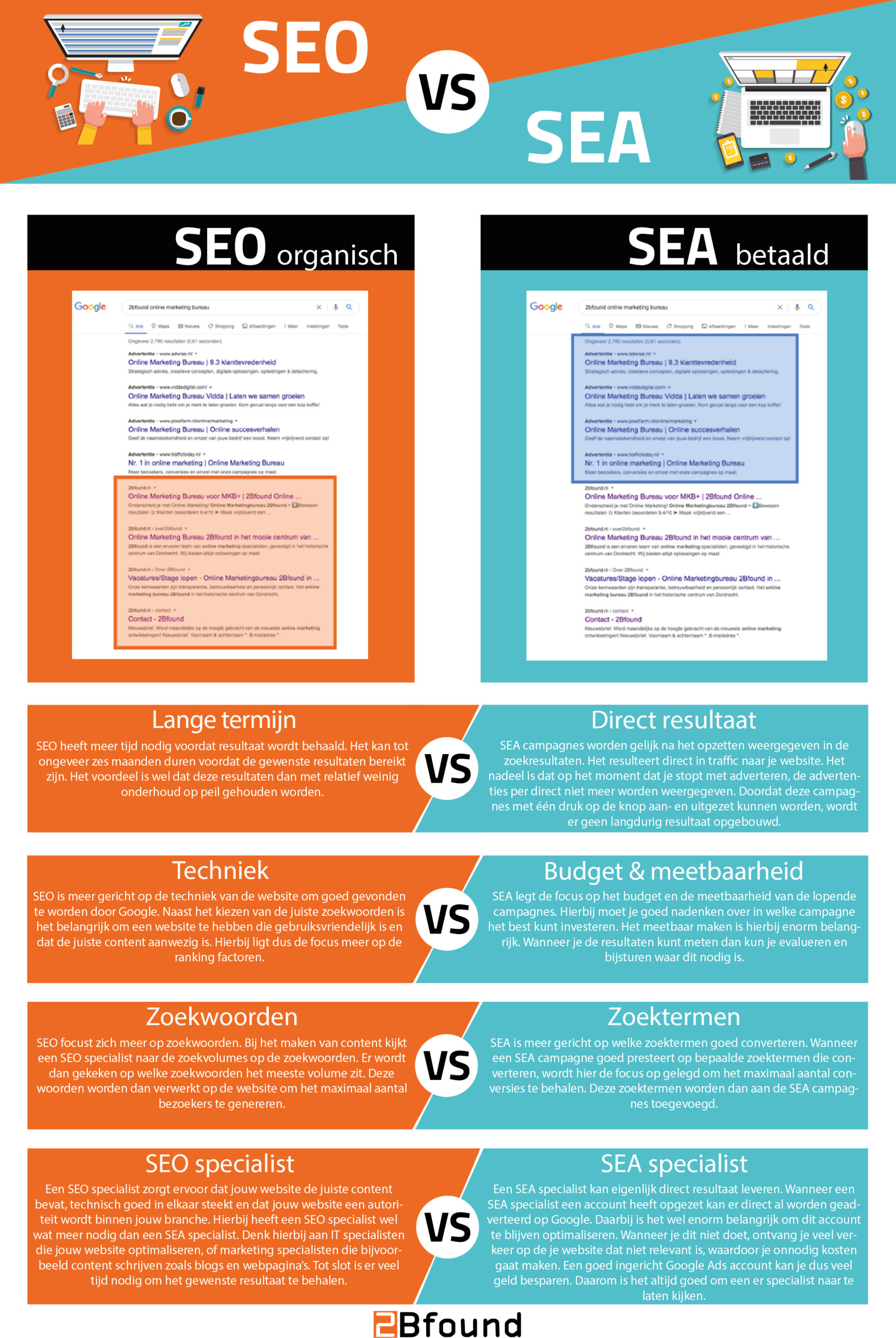 Vraag je je af welke strategie de meeste impact gaat maken op jouw online groei: SEO of juist SEA? Hoewel beide kanalen draaien om zichtbaarheid in zoekmachines, hebben ze elk een compleet eigen aanpak, tijdspanne en kostenstructuur. In deze infographic hebben we de belangrijkste verschillen voor je samengevat, zodat je in één oogopslag ziet hoe je jouw marketingbudget het slimst kunt verdelen. Download hem nu!